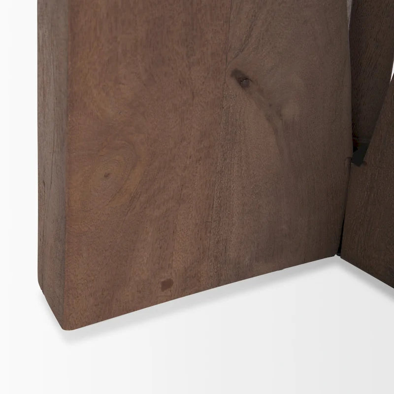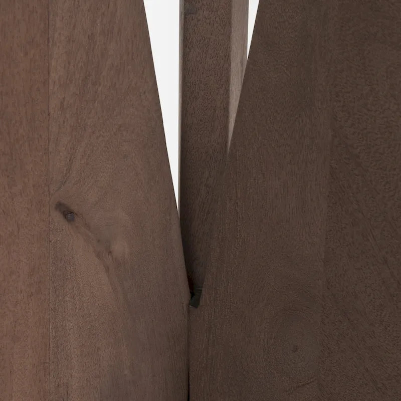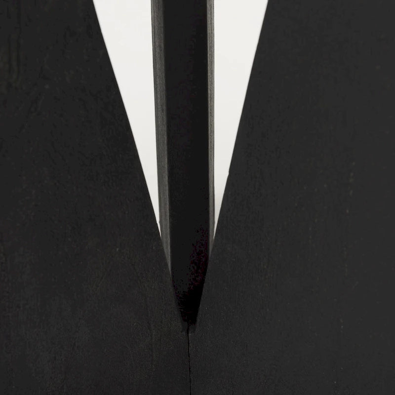 A unique wood accent with a round tabletop that rests on three angled legs that come together to form a beautiful and slender silhouette. All pieces are finished in a striking black that shows off the natural grain and form of the table.