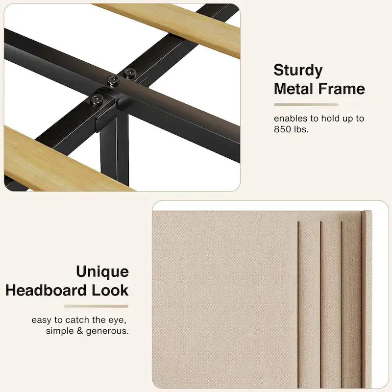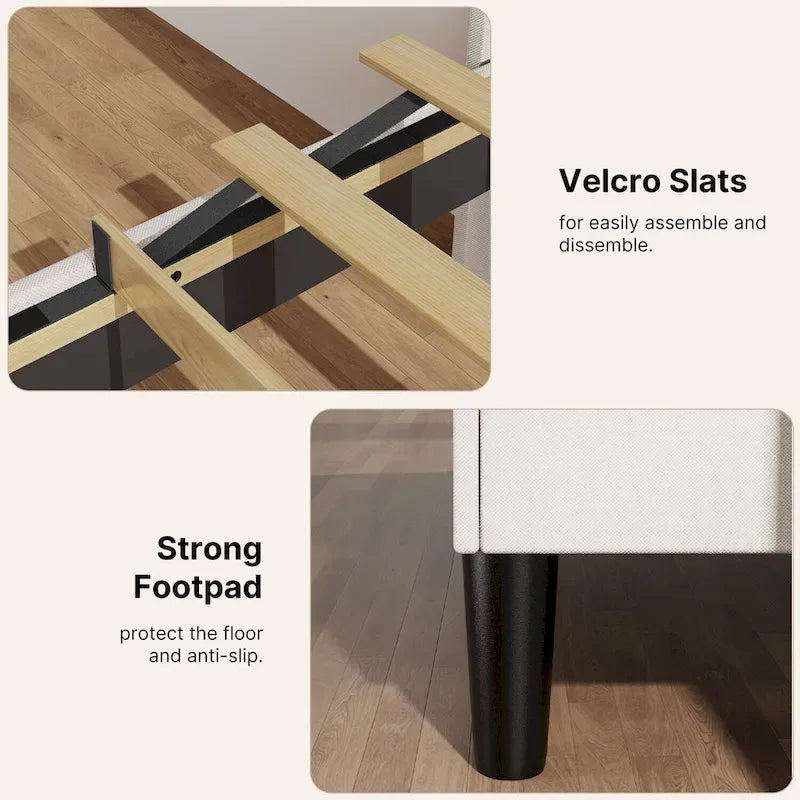 - Sturdy and Durable Frame: Adopting sturdy frame structure, after strict quality testing to ensure the stability and durability of the bed frame. The solid support system effectively disperses pressure and reduces noise, allowing you to enjoy every night with peace of mind.